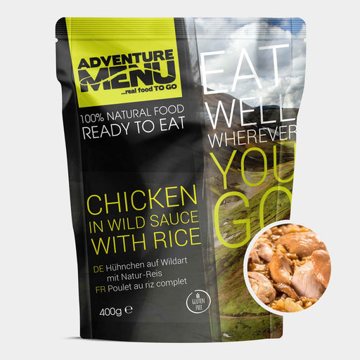 El pollo en salsa con arroz de la marca checa Adventure Menu es una ración de emergencias cocinada con ingredientes naturales y sin conservantes qu...