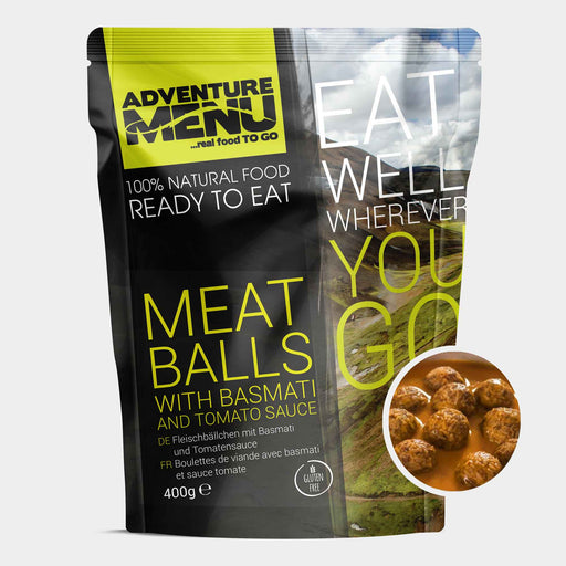 Las ración de emergencia de albóndigas con arroz basmati y salsa de tomate de la marca Adventure Menu es una comida esterilizada lista para consumi...
