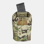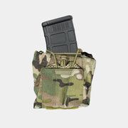 Una vez desplegada, la parte superior incorpora un cierre elástico ajustable que mantiene los cargadores seguros en el interior. Su diseño de perfil bajo garantiza que la bolsa permanezca en su sitio sin desplazarse en exceso durante el uso.