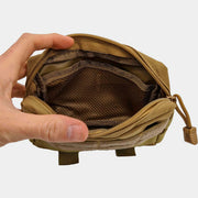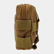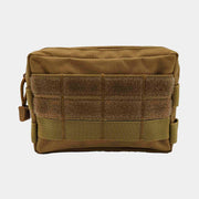 Este bolsillo molle pequeño dispone en el frontal de tres tiras de molle, dos de ellas con velcro hembra para anclar parches identificativos o cualquier otro accesorio. Por la parte trasera encontramos dos tiras de nylon que nos permiten anclar nuestro bolsa molle a cualquier panel molle de una mochila, chaleco, cinturón, etc.