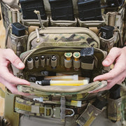 Su sistema de liberación rápida ambidiestro permite extraerlo con una sola mano desde ambos lados, mientras que la parte trasera con fijación de velcro macho facilita anclarlo en la parte frontal del portaplacas (si dispone de superficie de velcro hembra). Su diseño ergonómico proporciona comodidad incluso durante largos desplazamientos en vehículo o jornadas de uso prolongado.