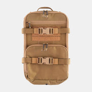 En la parte frontal superior nos encontramos con un pequeño panel molle recubierto de velcro para poder anclar accesorios adicionales. La mochila cuenta con dos cintas compresivas para ajustar el volumende la mochila al que necesitemos en cada momento.