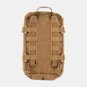 La parte trasera de la mochila cuenta con dos tiras para anclar directamente la mochila a la parte trasera de nuestro portaplacas. También podemos acoplarle dos correas y utilizarla como una mochila individual sin chaleco.