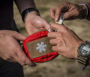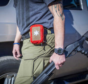 Su diseño patentado y compacto lo hace realmente útil como EDC, ya que podremos llevarlo en nuestra mochila o cinturón sin que nos moleste. Las cremalleras están firmadas por el fabricante YKK® y el botiquín está fabricado en nylon. No incluye el material sanitario.