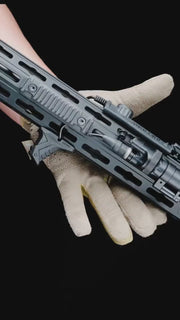 Las zonas texturizadas en la parte frontal y trasera para los dedos aseguran un agarre firme; además su textura rugosa nos permite apoyarlo en cualquier zona, aumentando la estabilidad durante el disparo. Fabricado en polímero de alto rendimiento SI Polymer Extreme, nos garantiza una gran durabilidad y funcionamiento en condiciones operativas reales.