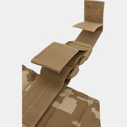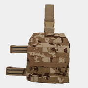 Pernera molle en camuflaje árido pixelado de la marca española Pielcu, fabricada en nylon cordura de alta resistencia. Este panel táctico con paneles de anclaje molle nos permite acocplar diferentes accesorios. Además se agarra a la pierna mediante dos correas regulables, además cada una de ellas cuenta con una parte elástica que nos permite total movilidad.