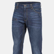 Están fabricado en tela vaquera de algodón 100%, la costura de la entrepierna está cortada en forma de diamante para una mayor movilidad. Dispone de varios bolsillos aparte de los clásicos que tiene todo pantalón vaquero, cuenta con un par de bolsillos en la parte trasera para poder portar un cargador o cualquier otro objeto de tamaño similitar, este bolsillo está ubicado más arriba para que no se vea cuando tengamos una camiseta o chaqueta puesta por encima.