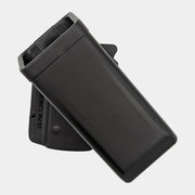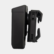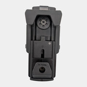 El anclaje al cinturón con adaptador rotativo 360º nos permite inclinar el porta cargador a nuestro gusto, además el ancho es adaptable desde 30 mm a 60 mm de ancho.