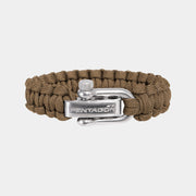 La pulsera survival bracelet de la marca Pentagon está fabricado con paracord 550 de grado militar con 9 nucleos de nailon. La hebilla está hecha de un bloque de acero inoxidable 316.