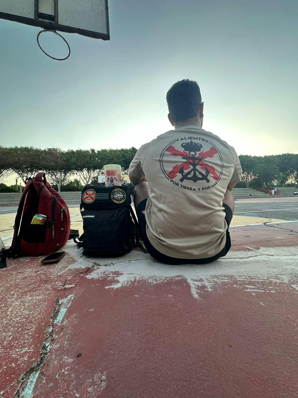 Marineinfanterie T-Shirt, mit einem exklusiven SERMILITAR Design und dem Motto "Mutig zu Land und zu Wasser".