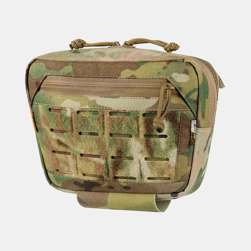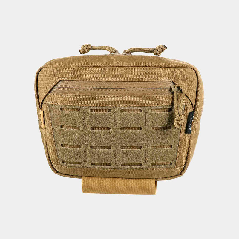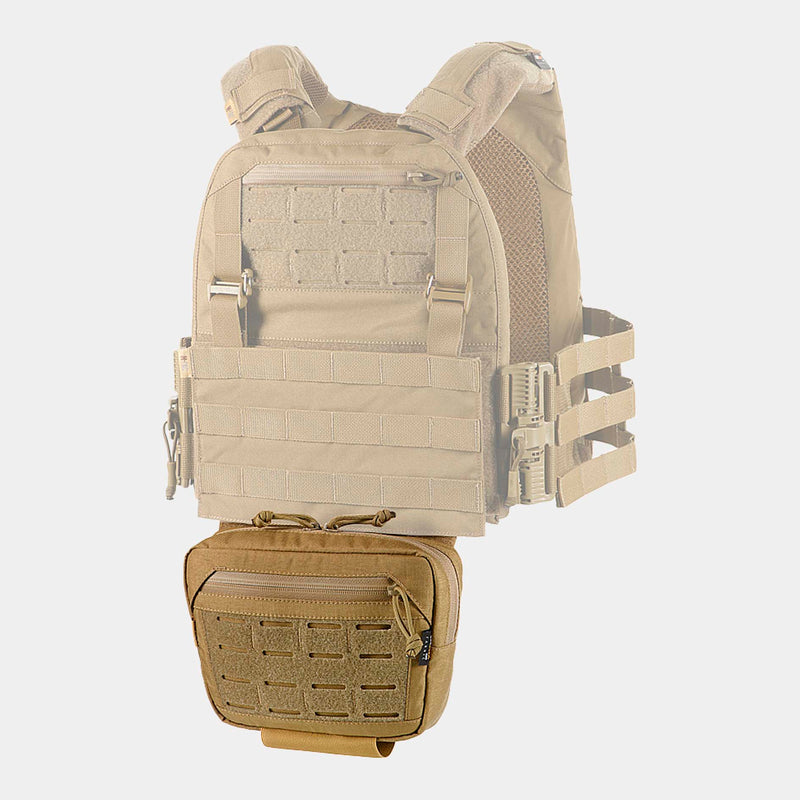 Es kann leicht an unserer Plattenträgerweste befestigt werden dank des enthaltenen Klettverschlusses, es verfügt über eine Tasche auf der Rückseite, um bei Bedarf ballistischen Schutz hinzuzufügen. Neben dieser Tasche verfügt es über zwei weitere Taschen, eine kleinere Außentasche und die Haupttasche, es verfügt auch über ein Molle-Panel mit Klettverschluss auf der Außenseite und ein elastisches Band zum Tragen von Tourniquets an der Unterseite.