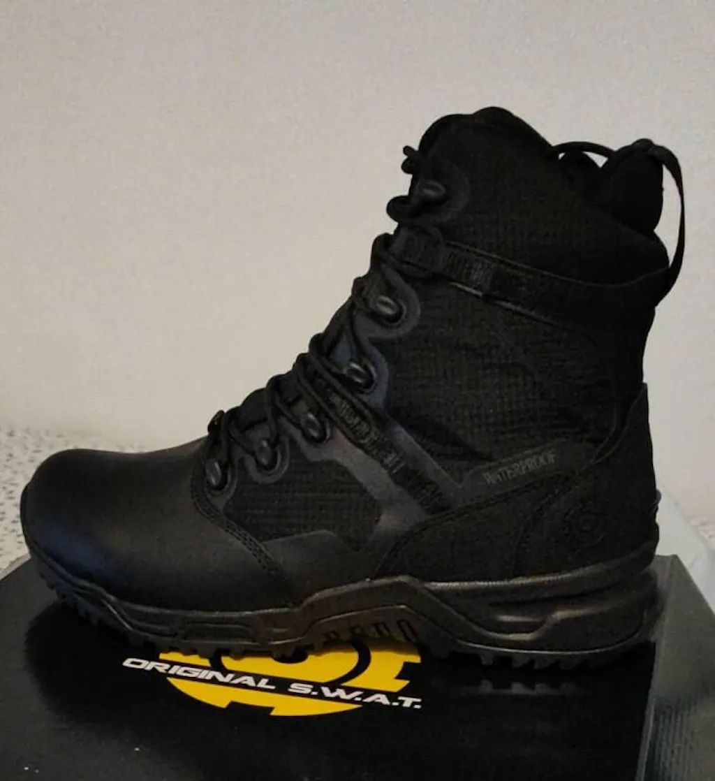 8" (20.3cm) high shaft boots, Alpha Fury 8.0 Size Zip from the American brand Original SWAT, feature waterproof membrane what makes them water-resistant.