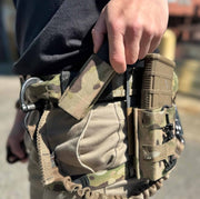 The KYWI single-pistol 40º angled magazine carrier from the American brand ESSTAC has been designed for shooters seeking a faster, more natural magazine draw. This model incorporates a rigid Tegris base with a fixed 40° cant, optimizing movement ergonomics and reducing reload time.