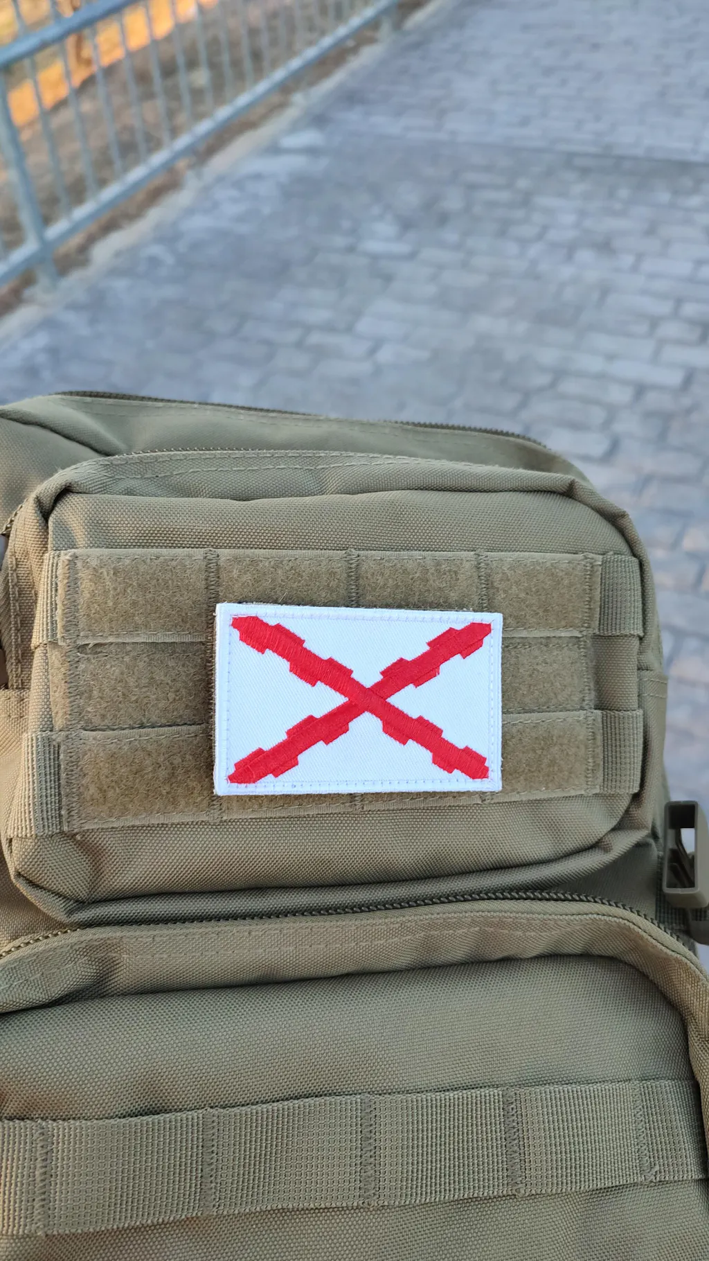 Embroidered patch with the Cross of Burgundy or Saint Andrew flag.