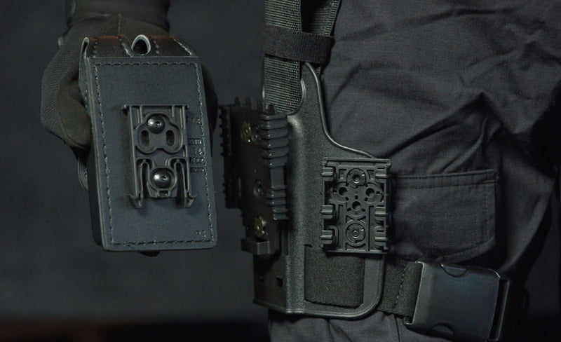 This accessory allows us to mount it on any holster of the brand and provides us with great efficiency when changing accessories, for example, we can mount it on our service holster and have the female ELS on our thigh rig and on the belt paddle and easily move from one location to another.