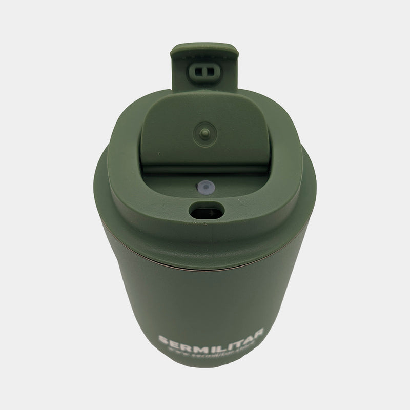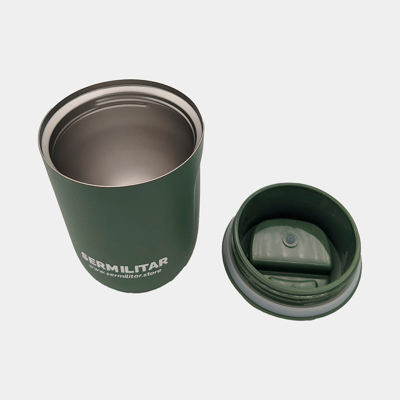 The SERMILITAR stainless steel thermal mug is made with double-layer insulation, featuring a design that makes it airtight as it has a leak-proof screw and a drip-proof cap.