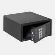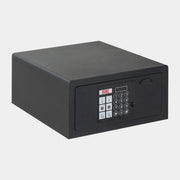 The motorized digital safe from the Spanish brand FAC features a coding panel on the outer part with master and user code, in addition includes emergency key just in case we run out of battery (features a low battery indicator).