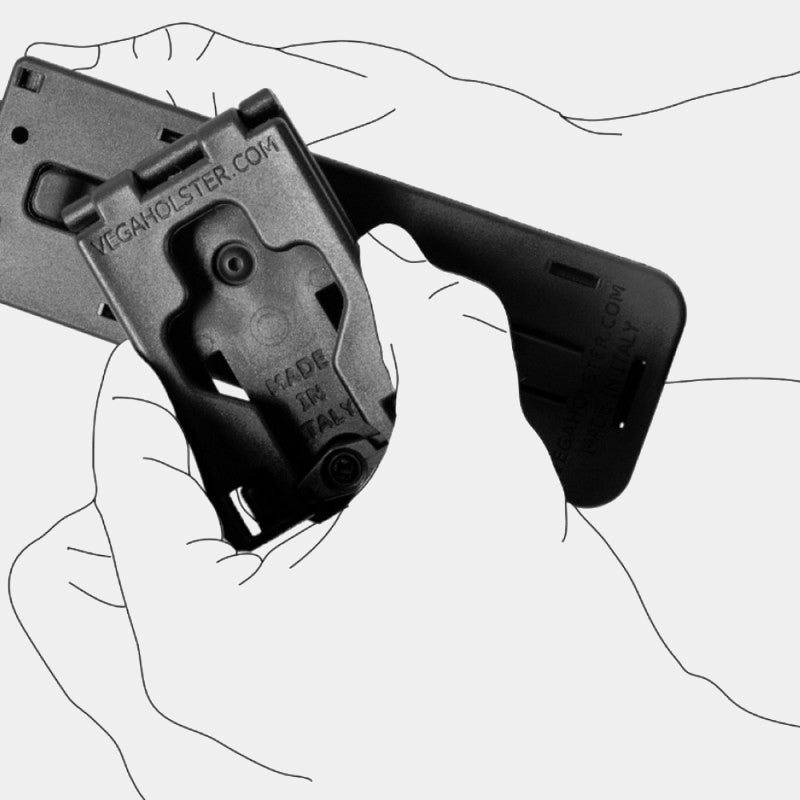 La funda para defensa extensible 8VP60 de la marca italiana Vega Holster está fabricada en polímero moldeado por inyección de alta resistencia, lo que hace que esta funda sea extremadamente duradera y resistente a los impactos y abrasiones.