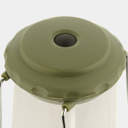 Su diseño permite colocarla sobre una superficie plana, transportarla cómodamente mediante sus dos asas metálicas abatibles o colgarla de una cuerda o mosquetón utilizando esas mismas asas.