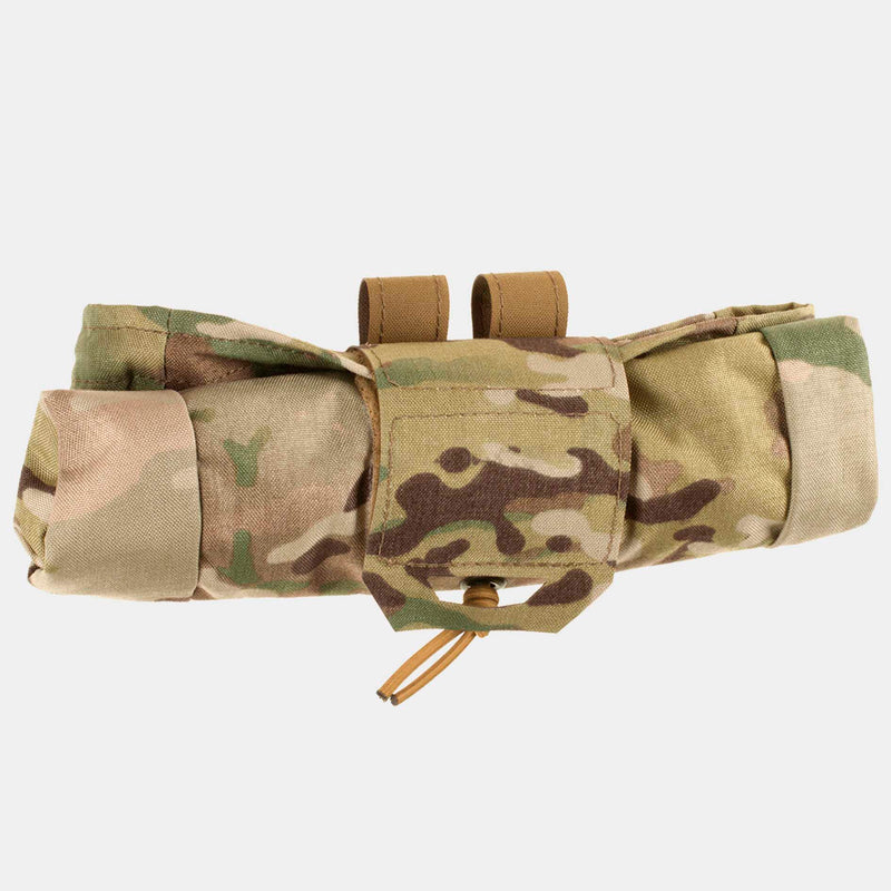 Está fabricada en Cordura 500D y Cordura 1000D en las partes más expuestas al desgaste. Podemos anclarla a cualquier superficie molle gracias a los bucles malice que encontramos en la parte trasera.