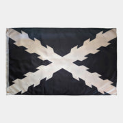 Drapeau de la croix de Bourgogne en blanc avec un fond noir. La croix de Bourgogne ou croix de Saint-André était l’un des drapeaux utilisés par l’Empire espagnol à son apogée. Elle possède deux œillets pour les drisses du mât.