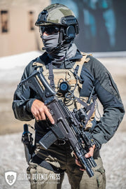 Le Gilet porte-plaques Spitfire de la marque polonaise Direct Action est fabriqué en Cordura 500D, finition laser cut laminée et softshell, entre autres matériaux. Tous sont de la meilleure qualité. Le panneau avant peut être fixé de deux manières différentes : avec du velcro et les deux boucles supérieures ou simplement avec le velcro en repliant la bande de velcro à l'intérieur.