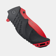 Su formato de navaja plegable reproduce fielmente la ergonomía y el funcionamiento de una navaja operativa real, incorporando un sistema de bloqueo tipo liner lock que aporta estabilidad durante el uso en entrenamientos. El mango ergonómico con textura antideslizante garantiza un agarre firme incluso en ejercicios dinámicos.