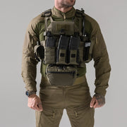 Il est compatible avec toute la gamme d'accessoires Spitfire, comme les bandes latérales, les pochettes radio, etc. Il est également compatible avec les chest rig type Mayflower de Velocity System. Il dispose de guides pour câbles permettant de fixer les câbles de communication sur les bretelles.