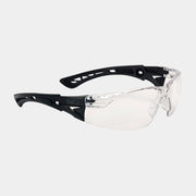 Gli occhiali balistici Bollé Rush+ presentano un design sportivo che offre un campo visivo panoramico e le aste sono realizzate tramite co-iniezione, risultando così molto leggere e resistenti. Il ponte nasale è antiscivolo.
