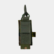 Il portacaricatore per pistola del marchio spagnolo Delta Tactics in colore mimetico boschivo pixelato, quello utilizzato nell'esercito spagnolo, ha un design elastico che lo rende compatibile con la maggior parte dei caricatori per pistola sul mercato.