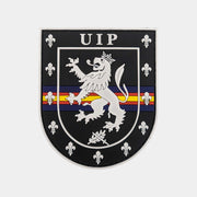 Patch van de UIP, Eenheden van Politie-interventie, met de vlag van Spanje en een dunne blauwe lijn, in PVC.