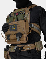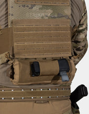 Uno de los puntos fuertes del EIR es su gran versatilidad de configuración. Gracias a su construcción puede instalarse en la parte trasera y delantera del portaplacas, chest rig o en nuestroo cinturón primera línea, adaptándose a diferentes montajes sin comprometer la movilidad ni estabilidad. Cuenta con un sistema de fijación que es compatible con MOLLE y velcro.
