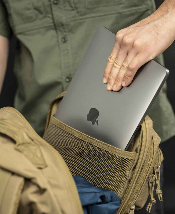 La mochila Assault Large Backpack de Pentagon Tac Maven, con una capacidad de 46 litros, está fabricada en resistente poliéster 600D y equipada con cremalleras de la marca SBS®, lo que garantiza una alta durabilidad y fiabilidad en cualquier entorno.