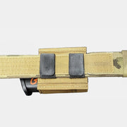 Su sistema de fijación Velcro One-Wrap cortado a láser y cosido directamente al cuerpo del portacargador proporciona una sujeción robusta y fiable incluso en condiciones de uso intensivo. Las correas de velcro tienen una longitud aproximada de 15 cm y son compatibles con la mayoría de los cinturones de 4.4 a 5.7 cm de ancho. Están pensadas para usarse en cinturones exteriores con velcro macho (duro) en la cara interior, aunque también pueden utilizarse en cinturones sin velcro (en este caso, no bloquean totalmente el desplazamiento lateral).