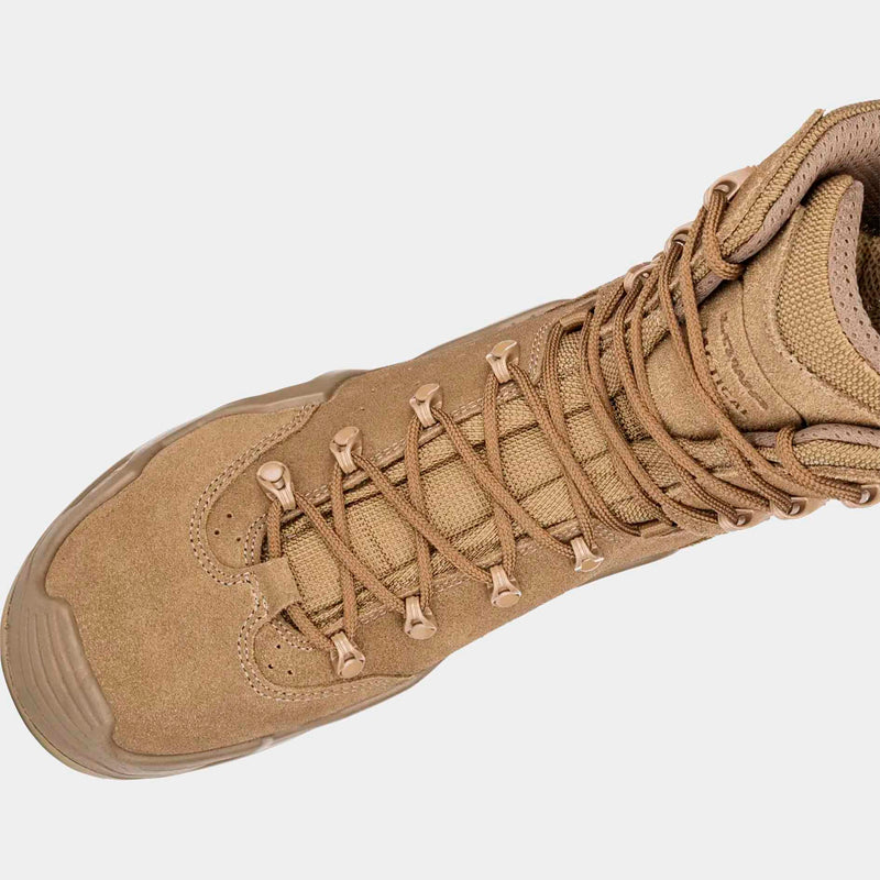 As botas Z-8S C da marca alemã Lowa na cor Coyote OP são umas botas fabricadas em materiais de primeira qualidade que faz com que seja uma bota resistente e funcional, perfeita para terrenos acidentados.