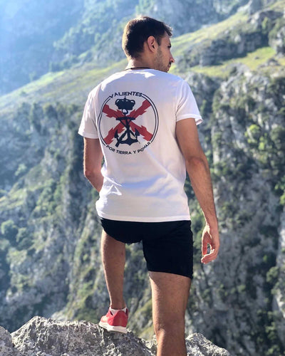 Spanischer Marineinfanterie-Pullover, der älteste der Welt, mit dem burgundischen Kreuz auf dem Rücken und dem Motto "Tapfer zu Land und zu Wasser".