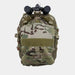 At the back, it has a space for a hydration bag, at the top we have an outlet for the hydration bladder and for the radio. We can set it up on both sides of the backpack since we have outlets all over the top.