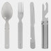 The KFS campaign cutlery from the Polish brand Helikon-Tex consists of 4 pieces made of stainless steel. This pack includes: knife, fork, spoon, and a can and bottle opener.
