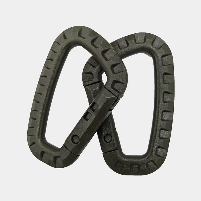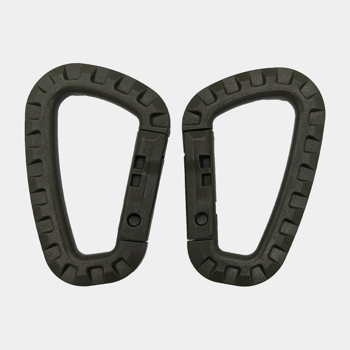 Pack of two ABS carabiners from the MILTEC brand in Coyote color, with a length of 8.3 cm.