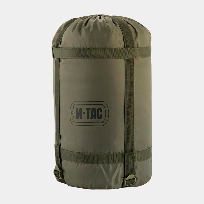 The tactical sleeping bag with compression cover from the Ukrainian brand MTAC is made of 100% ripstop nylon resistant to tearing on the outside and 100% polyester.