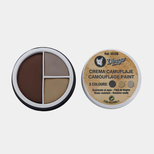 Green, brown, and black camouflage face paint with a small mirror that facilitates application. Approximate size: 6x8cm
