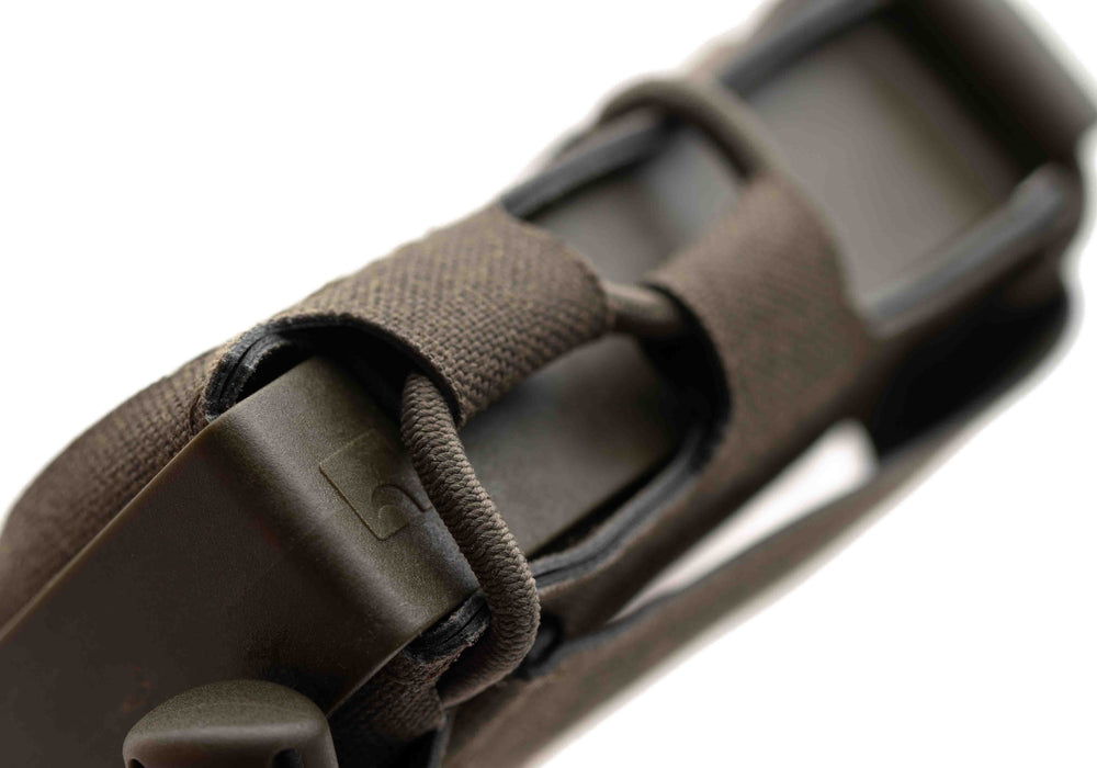 The 9mm pistol magazine Speedpouch from the Austrian brand Clawgear is designed to combine a fast chargingwith aexcellent retention . Thanks to its adjustable system with elastics, it is compatible with most chargersof double row on the market.