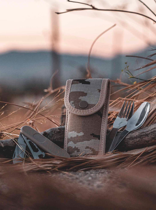 Set of campaign cutlery from the Spanish brand Barbaric that includes everything necessary with a case that facilitates its transport.