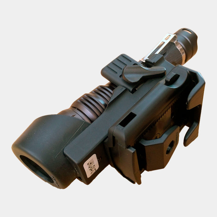 The tactical flashlight holster from the Czech brand ESP (Euro Security Products) is a flashlight holster made of high-strength injection-molded polymer that can rotate 360º and allows us to fix the flashlight on 16 different positions. Thanks to its open design, it allows us to access our flashlight quickly and comfortably.