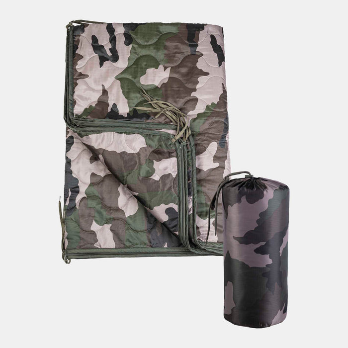 Poncho liner multifonction ou couverture américaine de la marque allemande MILTEC, c'est une couverture américaine très polyvalente que l'on peut utiliser de différentes manières : comme couvre-lit, comme sac de couchage (grâce à la fermeture éclair bidirectionnelle YKK), comme poncho, etc.