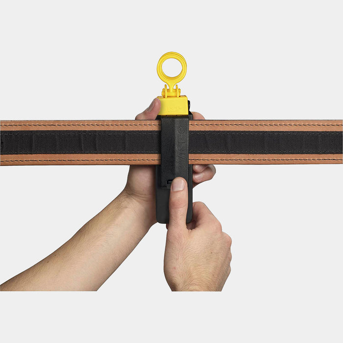 Elle est compatible avec des ceintures de 3,18 cm à 5,7 cm de large, la largeur pouvant être ajustée grâce à une languette située à l'arrière. Elle se ferme par un clic et peut également être fixée à toute surface molle. Ses dimensions approximatives sont de 13,3 x 6,35 cm.