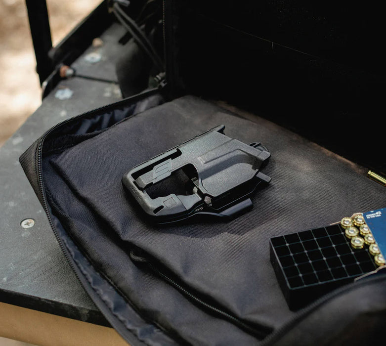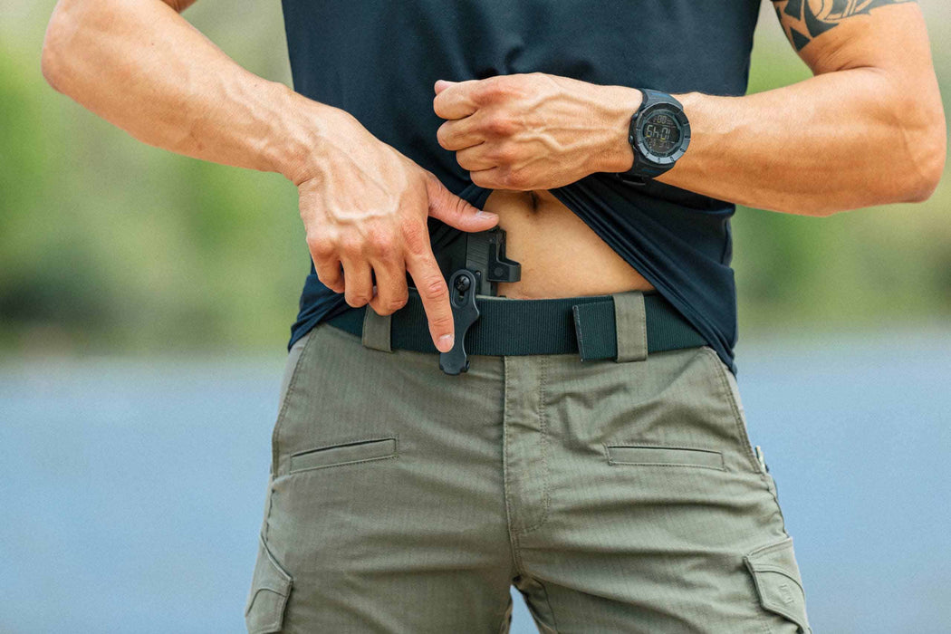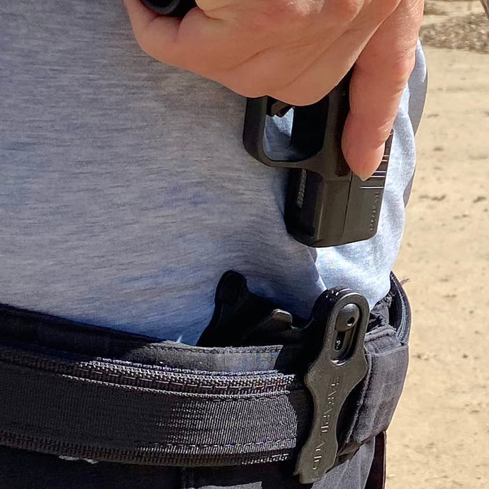 La fondina interna IWB (Inside the WaistBand) Schema del marchio statunitense ha un design minimalista con l'obiettivo di rendere il porto occulto il più discreto possibile.