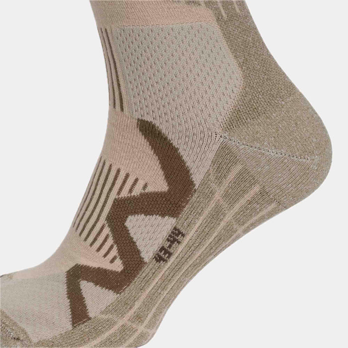 De geventileerde inlegzool bevordert de ademhaling van de voet, terwijl de ondersteuning van de middenvoet en de demping van de achillespees de stress verlichten voor lange gebruiksperioden. De comfortrand PRO zorgt ervoor dat de sokken de hele dag veilig blijven zitten zonder afdrukken achter te laten. De de tenen van de sokken zijn naadloos en de enkelzone is voorzien van een geweven stof voor extra comfort.