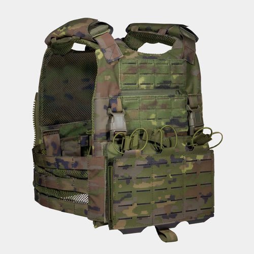 Het tactische pak Blackbeard van het Spaanse merk Corso is gemaakt van een mix van katoen en polyester met camouflage in pixelachtig Spaans bos. Het heeft een ontwerp dat zich aanpast aan elke omgeving, of het nu oefeningen in het veld of in stedelijke gebieden zijn.