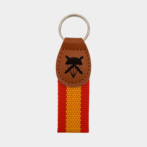 Sleutelhanger met de vlag van Spanje en het embleem van de Parachutistenbrigade (BRIPAC).